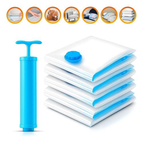 Kit 5 Sacos a Vácuo para Armazenamento com Bomba Manual