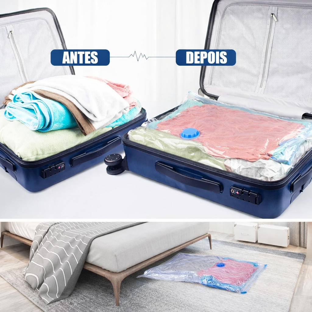 • Economiza até 80% de espaço no guarda-roupa, malas e caixas